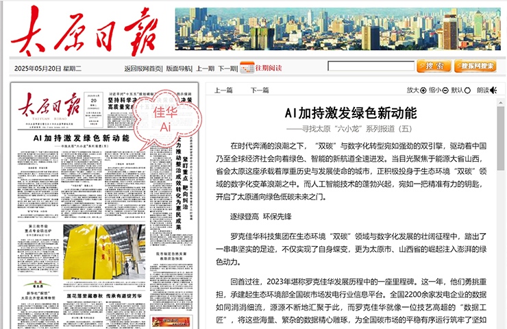 5?20丨《太原日報(bào)》頭版頭條報(bào)道佳華:AI加持 激發(fā)綠色新動(dòng)能